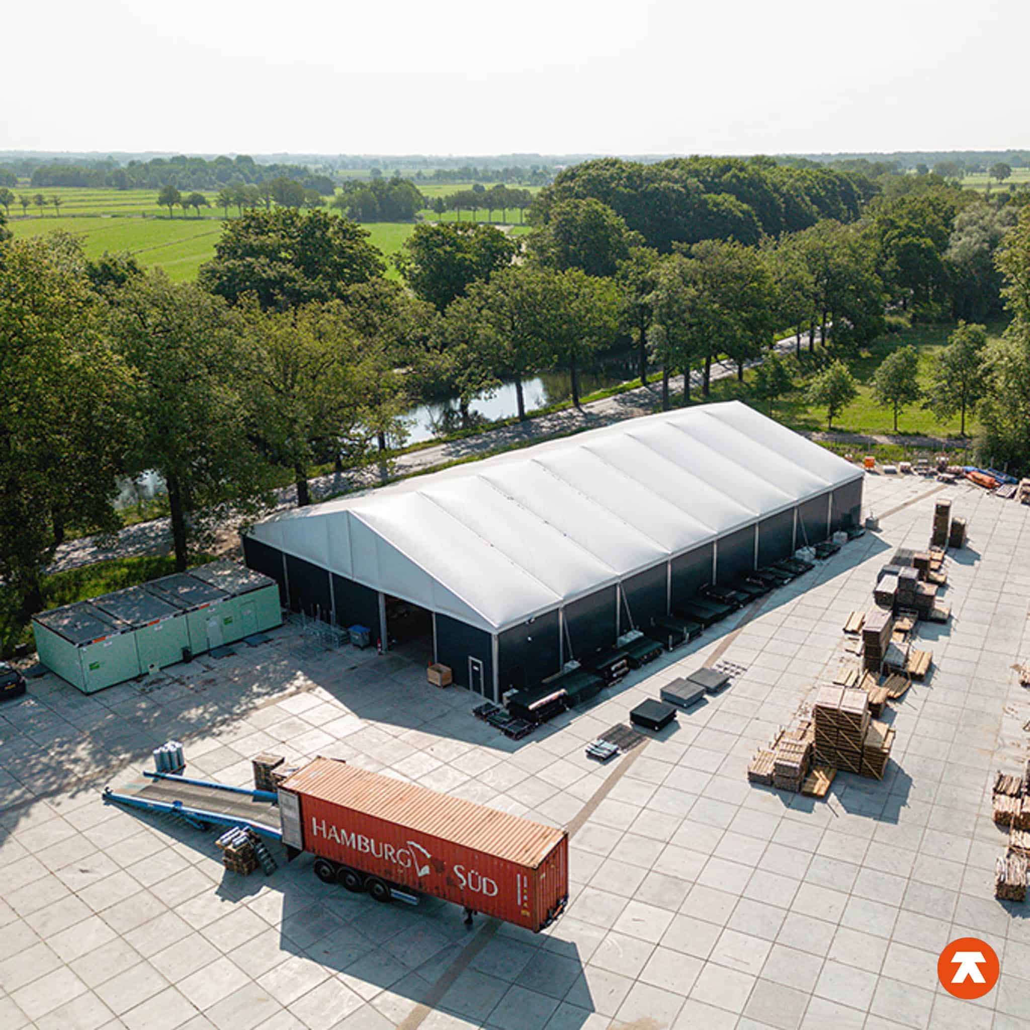 Ces tentes isolées sont idéales pour le stockage de marchandises sensibles à la température ou pour des situations où un climat constant est essentiel. Elles se reconnaissent à leurs toits bombés dans lesquels de l’air est insufflé pour un effet isolant.